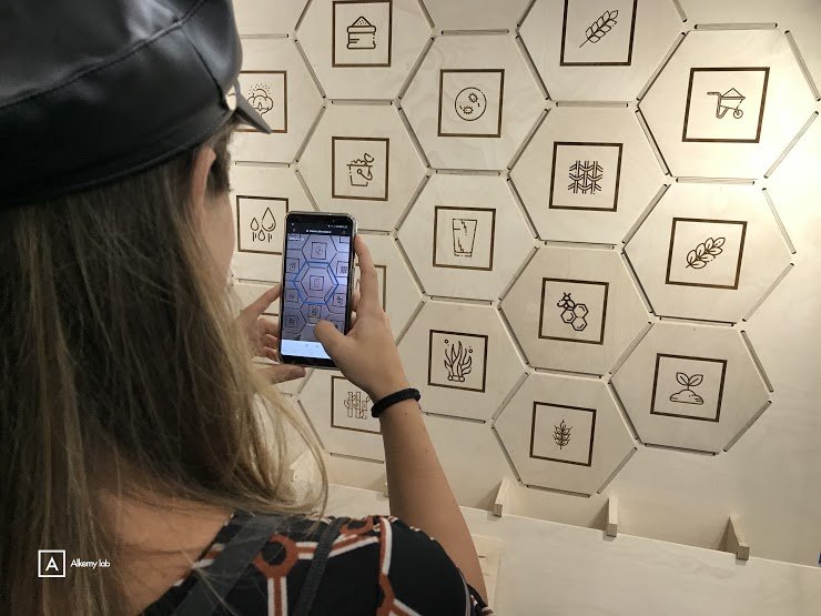 DReAm/r is a board composed of a vertical structure and linkable modules, called tokens. A token represents a recyclable element, compatible with other tokens. The experience begins with a real interaction: the user creates a combination of the tokens on the board. Through its own device, he frames it and discovers the generated Bio Materials in augmented reality.