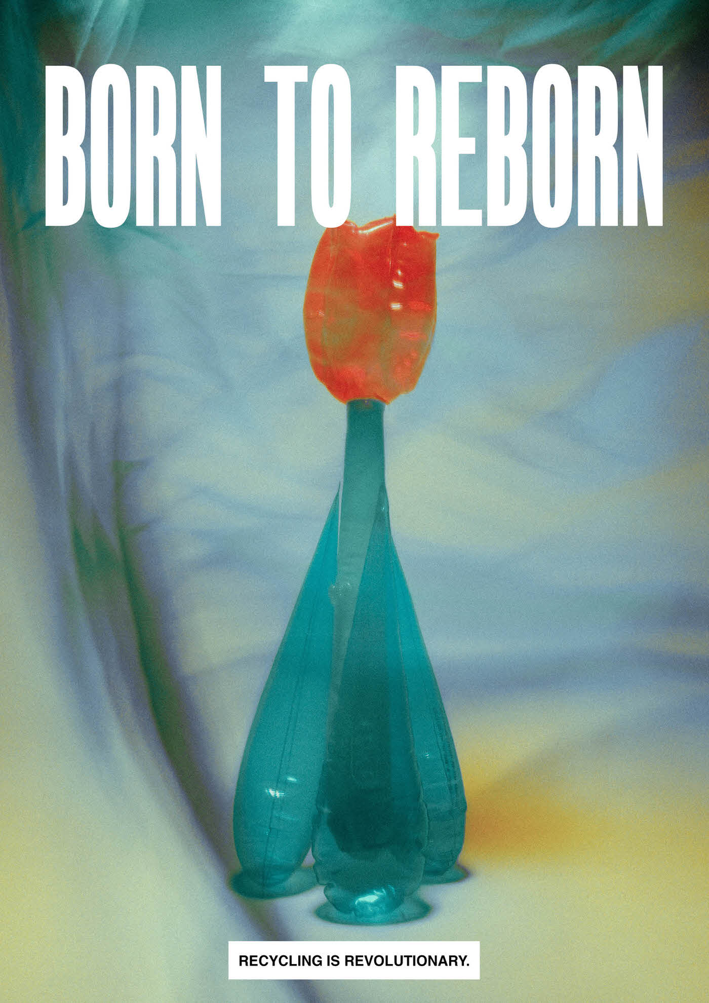 The aim of the project is raising awareness about plastic recycling. I don’t want people looking at this poster to feel bad and guilty. Because doing so would only risk losing their attention. Instead, I want them to reflect on a proactive aspect, namely that plastic was born with the aim of being reused. At the bottom I added a note: “Recycling is revolutionary”. Anyone who looks at these posters will be positively motivated to act, not out of terror but out of hope.