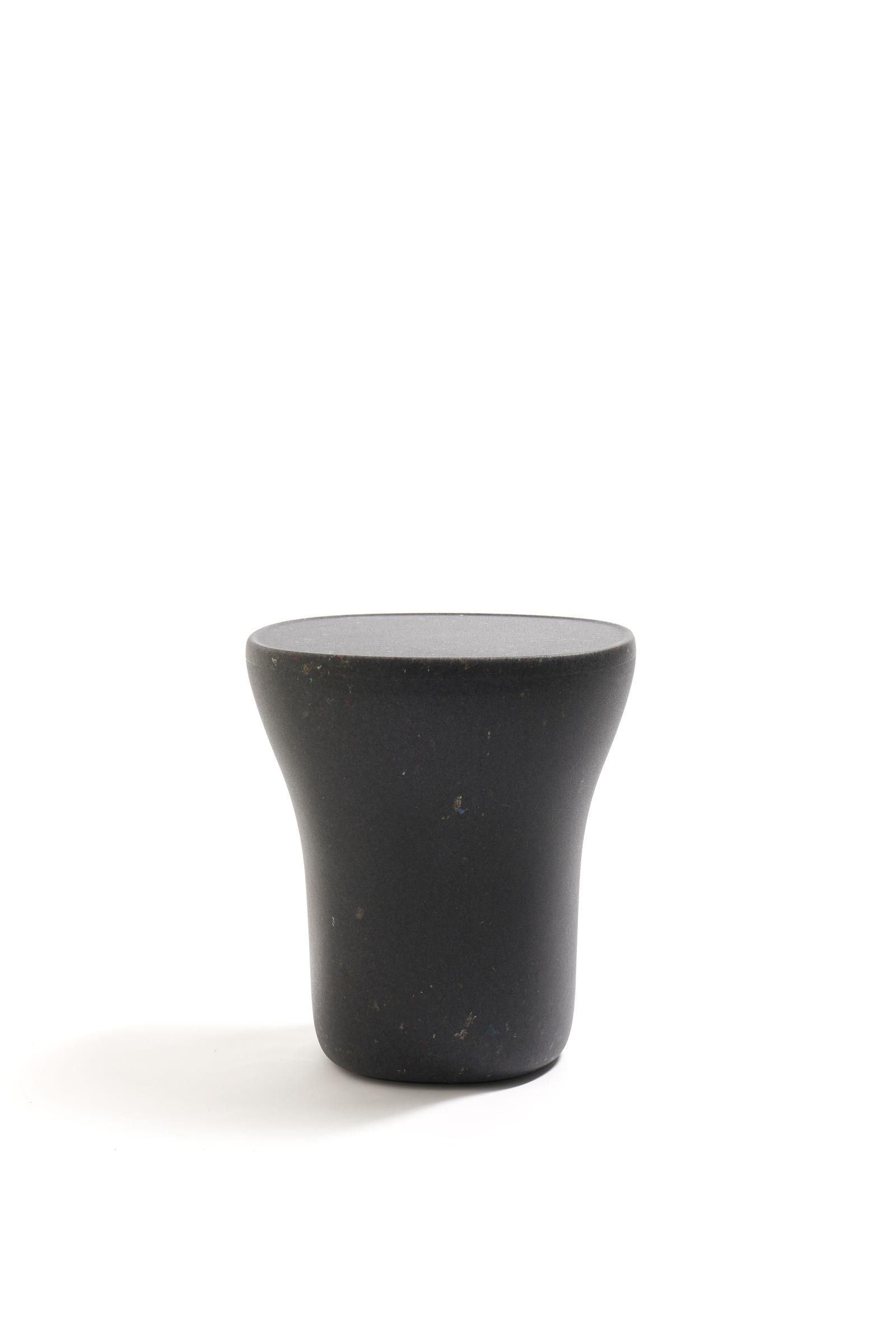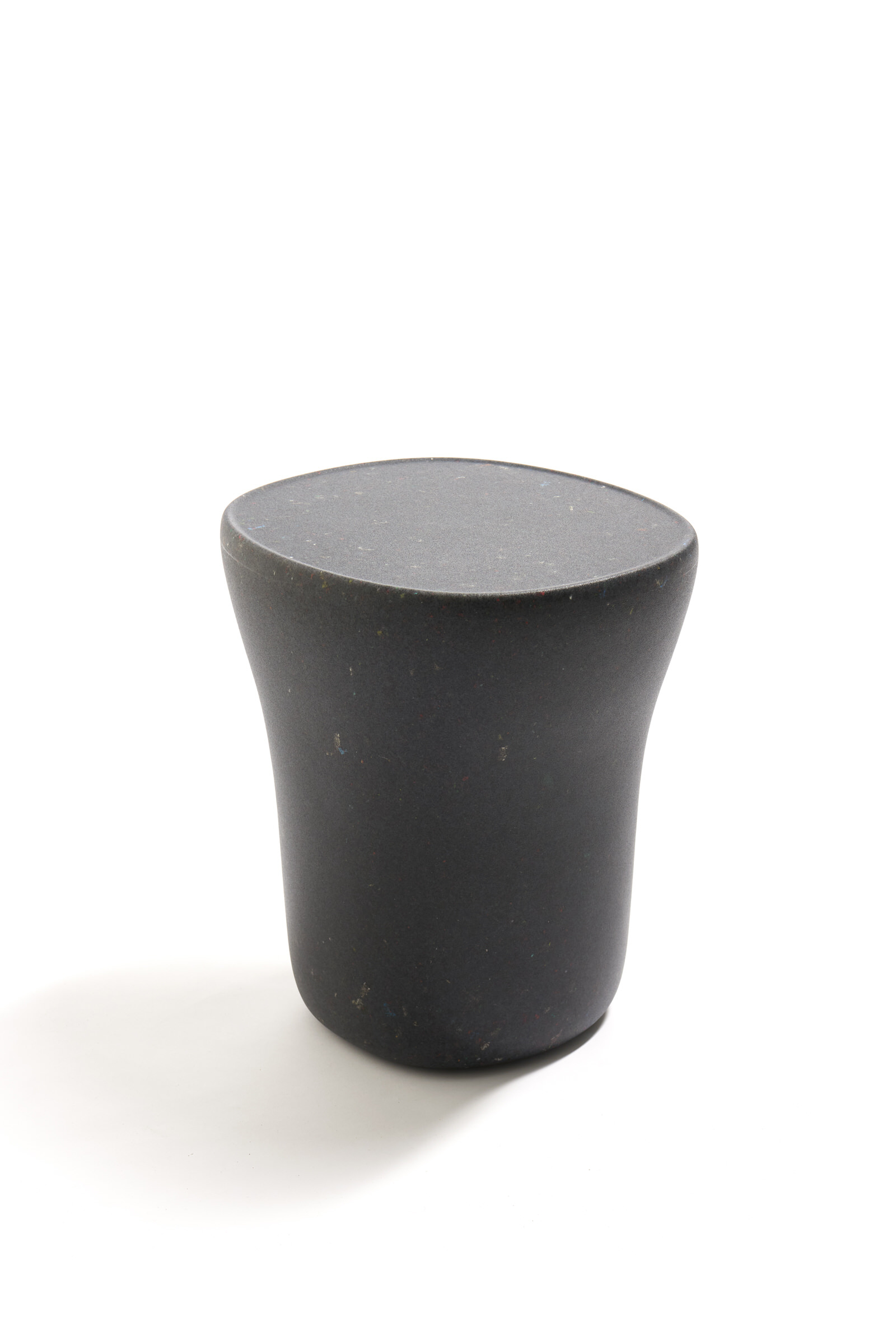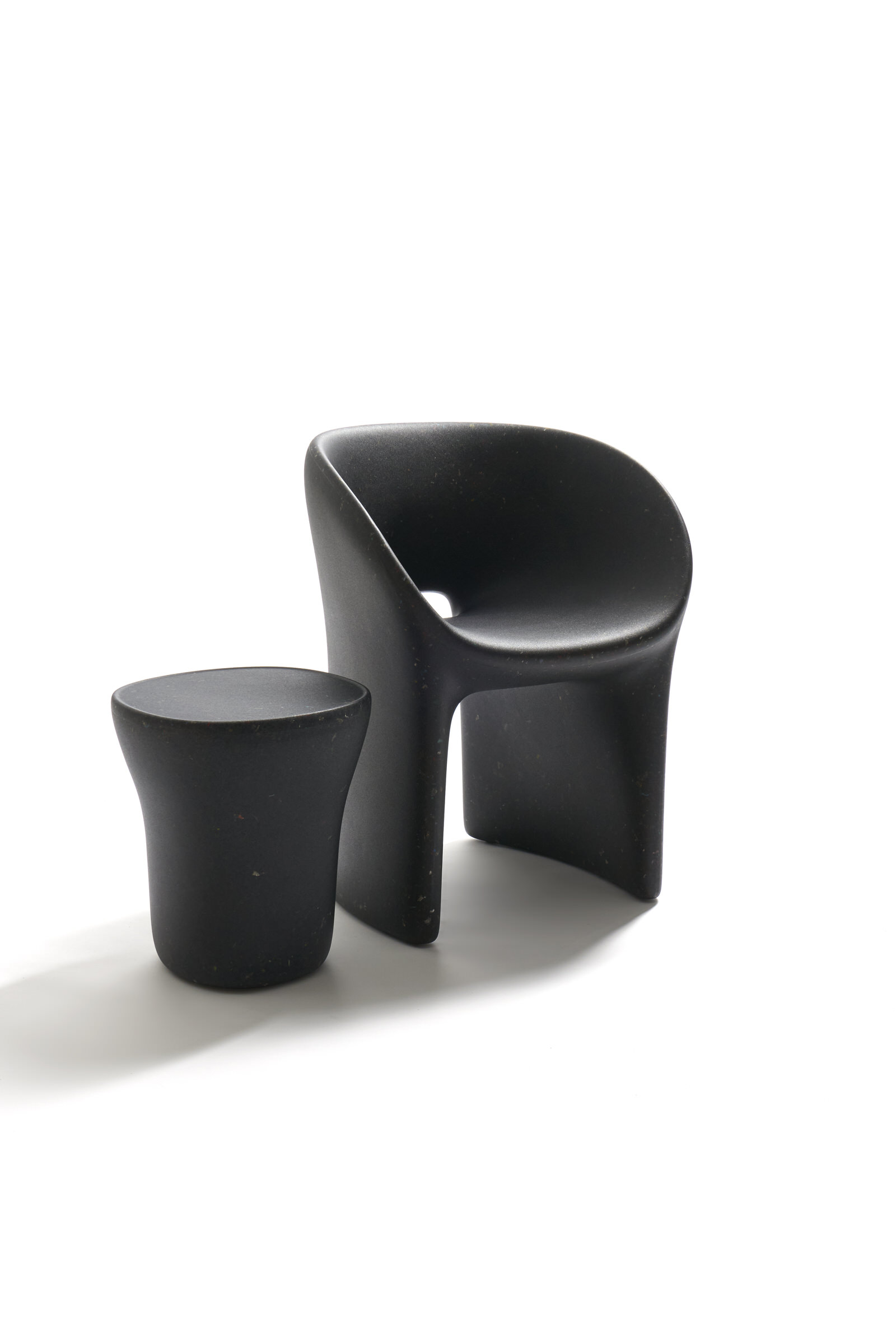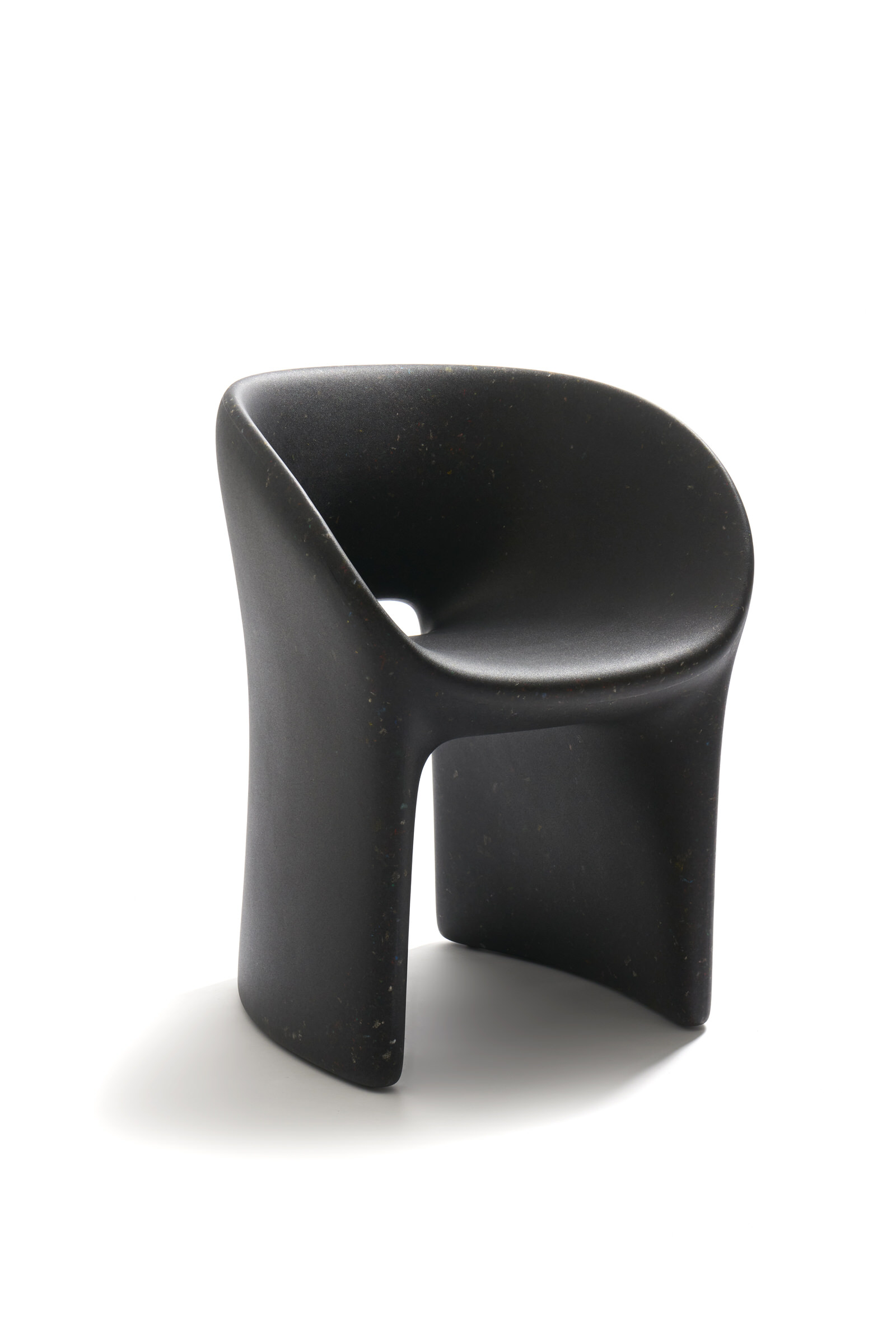 Armchair Richard and Table Judy are both reinterpretations for adults of ecoBirdy’s award-winning furniture for kids’ chair Charlie and table Luisa. Both products feature ecoBirdy’s distinctive speckled look making waste material beautiful. The recycling process is an integral part of ecoBirdy’s design process. Due to accurate sorting, cleaning and grinding during the recycling process, post-consumer plastic waste is transformed into valuable material while retaining character and memory of the previous product life. Both products are specially designed taking into account the specific properties of recycled plastic in production. Not only the appearance of the material is characteristic, but also the rounded shapes contribute to its materialization.