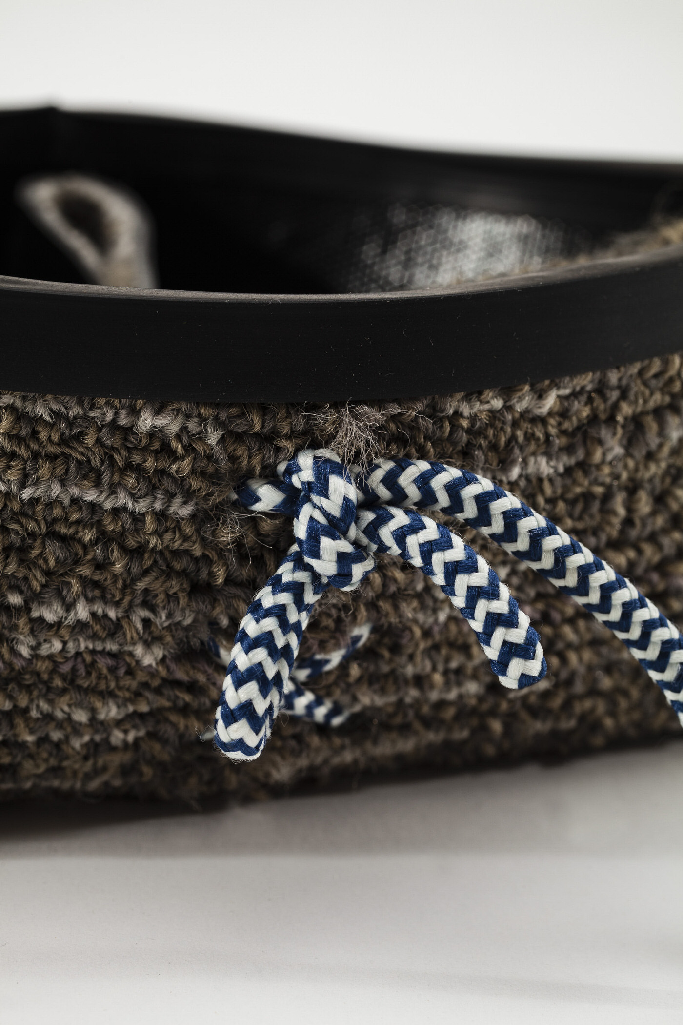 Within the framework of our Sustainable Design Laboratory, El Espartano presents a new collection of design objects that we have created together with industrial designer Luciana González Franco. This new collaboration began with the idea of exploring upcycling. One of Luciana’s passions is to recover and reuse materials for the creation of new objects. On this occasion, she worked with the design team at El Espartano to develop Furoshiki. Achieving a balance between design and the use of scrap materials, Furoshiki is a collection of everyday objects that originated with the idea of finding new functionality for the remnants from El Espartano’s carpet tiles. The collection is inspired by the traditional Japanese art of fabric wrapping, furoshiki, in which items are wrapped using squares of fabric. By folding and tying the fabric in different ways, a single object can serve many purposes. In Luciana’s interpretation of furoshiki, the carpet tiles are transformed into the seating and containers that make up the collection. The pieces have soft curves and simple lines that bring the language of the material to life. With the premise of reusing materials and working in three dimensions, the project developed through a trial-and-error process that allowed the designers to understand the structural possibilities of the tiles as a material. The challenge was to find the best shape and to re(use) the materials to create pieces that are consistent with the company’s philosophy. Through recovering discarded materials and giving them new meaning, Furoshiki promotes caring for our environment and speaks of object permanence and traditions over time.