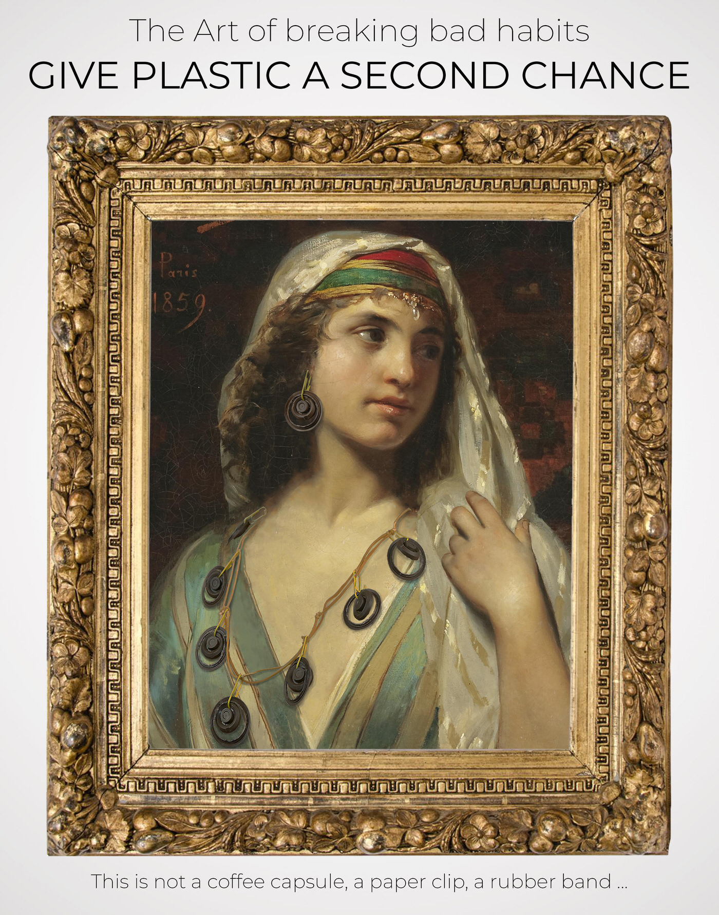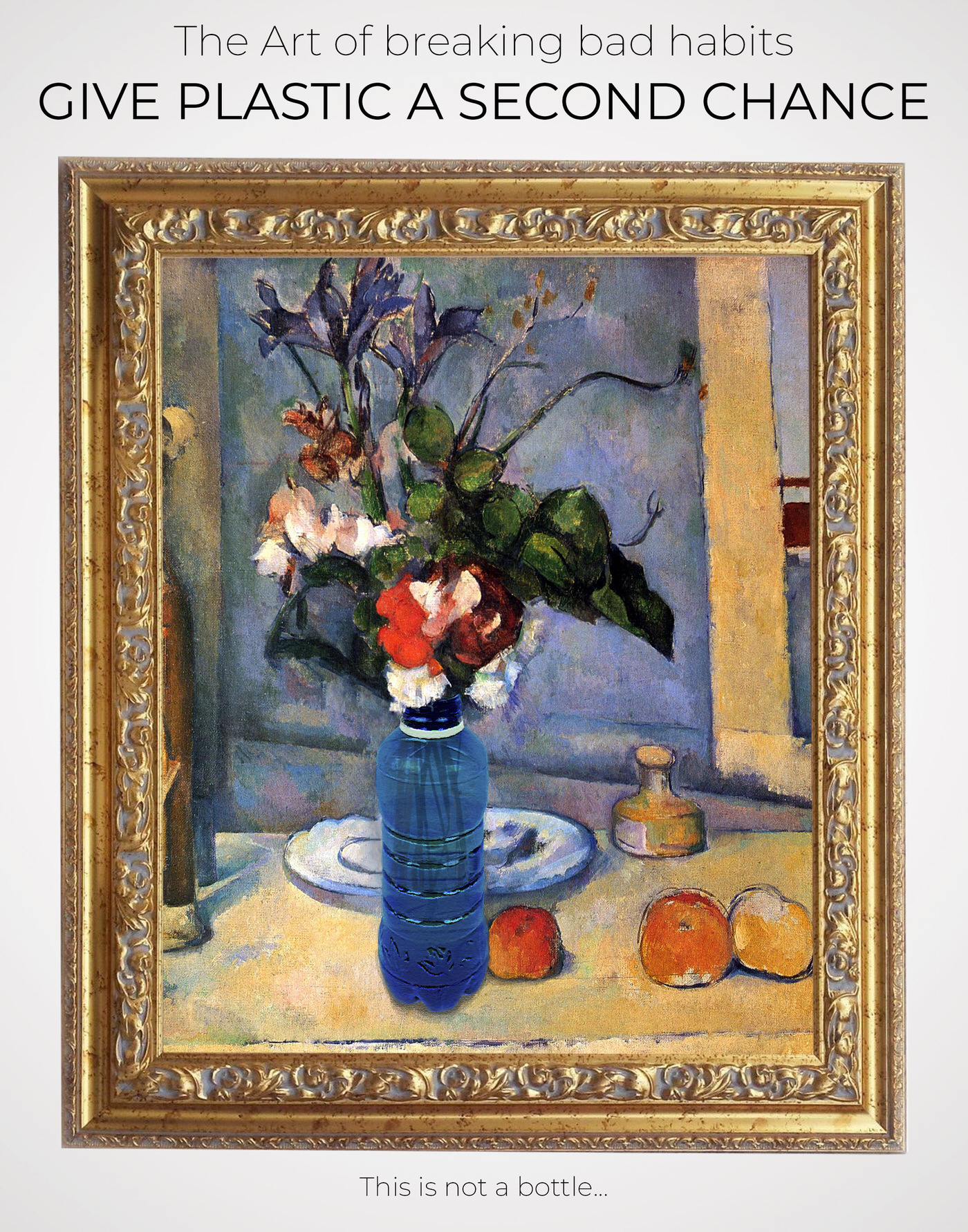 “The Art of breaking bad habits” is a project whose aim is showing the importance ofreusing and recycling plastic in different contexts of our daily life, with a particularemphasis on recreational activities.As creative people are the target of my work, I made the choice of using famouspaintings to convey the message.An artwork is an expression of creativity and beauty, it’s a symbol of the society wherethe artist lived. Nowadays, environmental problems are the key issues of society, aturning point for future generations. Art and design can’t avoid talking about them andfinding solutions.The paintings I chose for my project belong to a time when plastic was not aprotagonist of daily life. I engaged with a fun activity replacing some elements infamous paintings with plastic objects we use every day, such as straws, bags, coffeecapsules, bottles, face masks… This stuff is not a devil, Plastic is here to stay, so wemust learn to live with it and give it a “second chance”, a second life by reusing andrecyling…