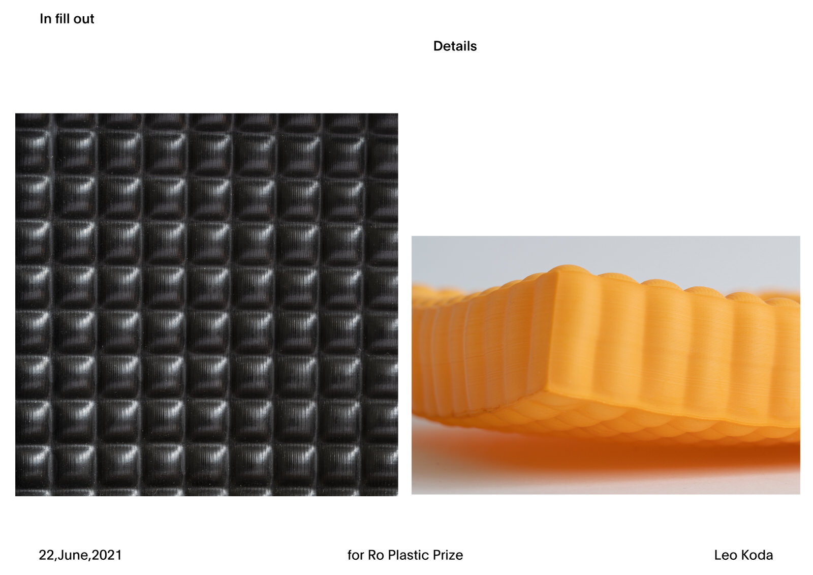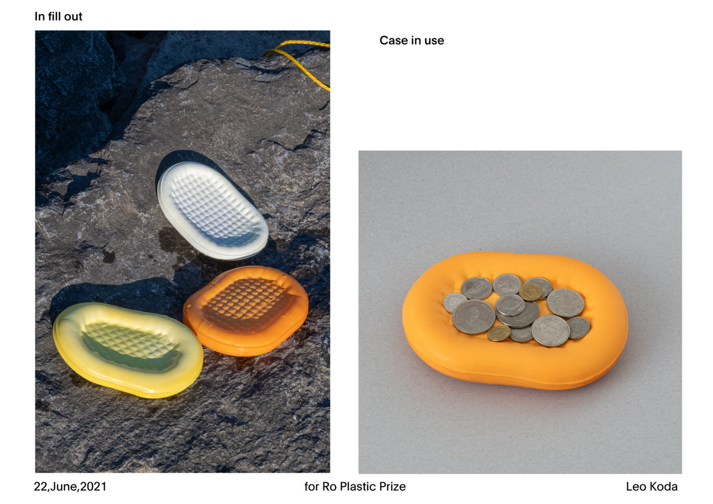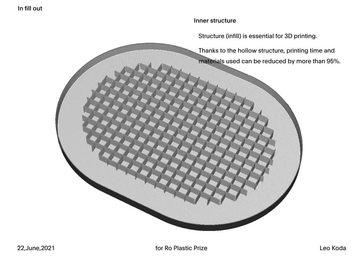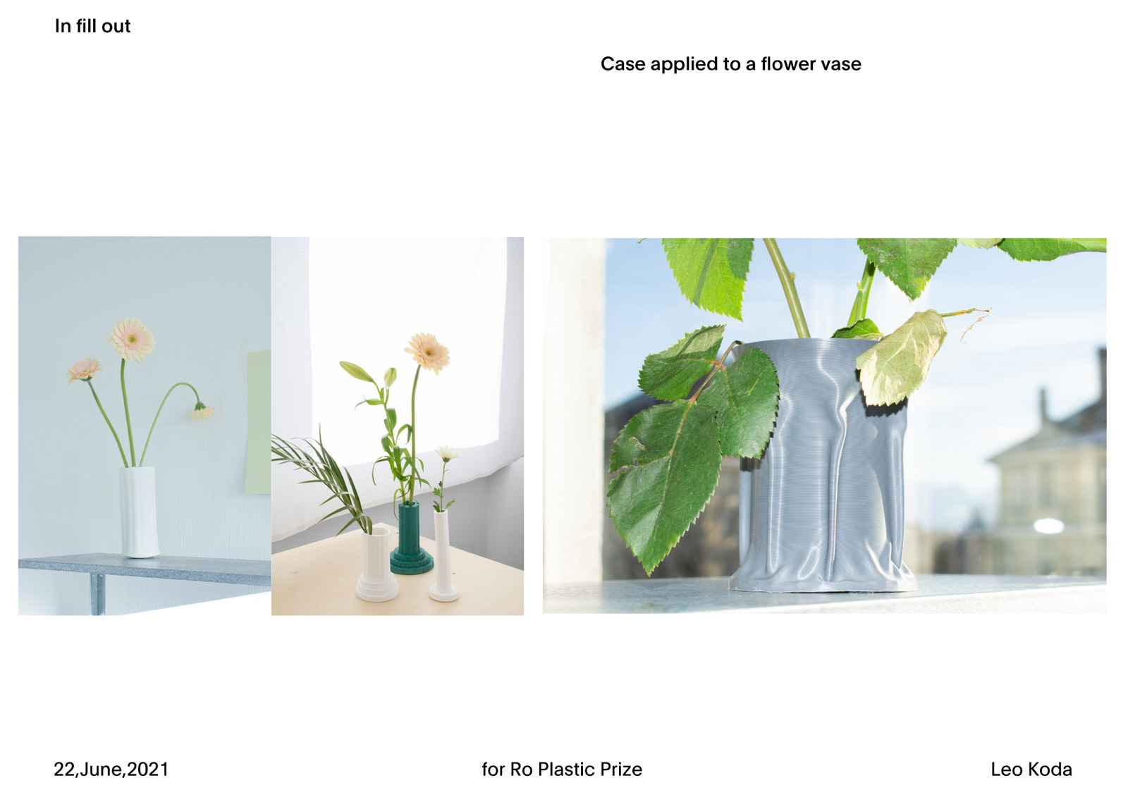 “In fill out” project is a project in which 3D printed objects are finished by boiling them in a pot. By relating the process of cooking to the process of making a product, I found a way to make it easy to process at home. As a result, by keeping the amount of material to a minimum, it is even possible to make them light enough to float on water. The ability to pack it flat enough to fit into an envelope has also made it very cost-effective to transport. Printing time and materials can be reduced by more than 95%. The new technique can be applied to a wide range of products, including vases, wall objects and coin trays. In the end, I managed to create a surface that does not look like it was made with a 3D printer.