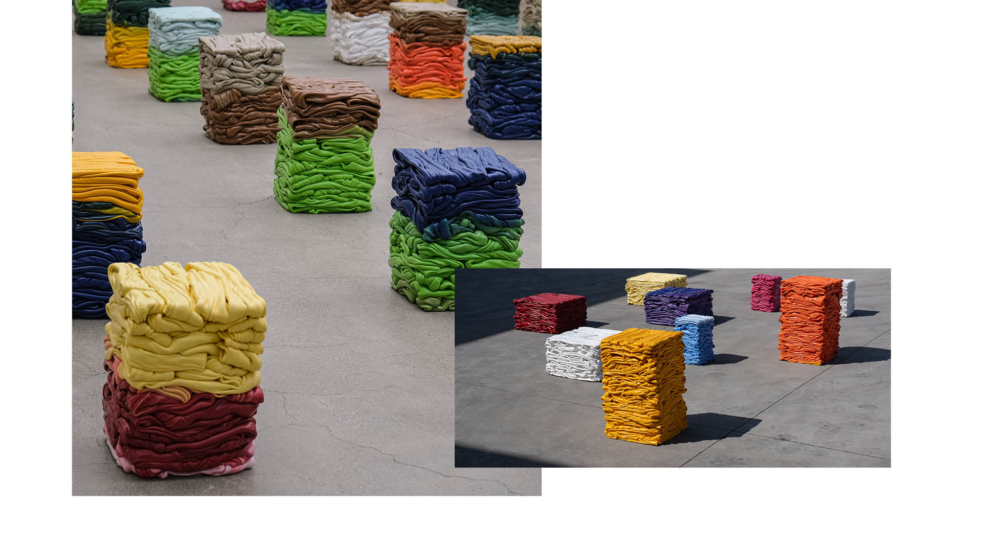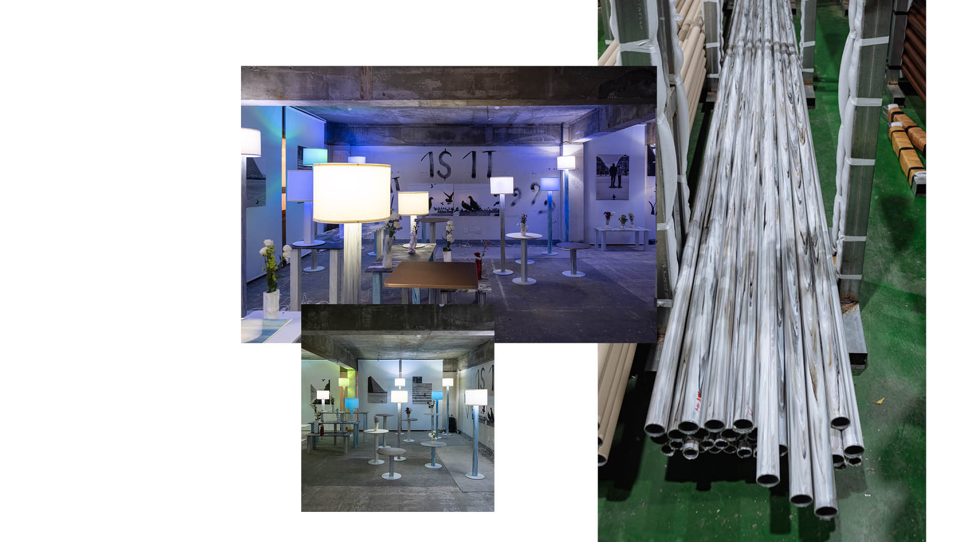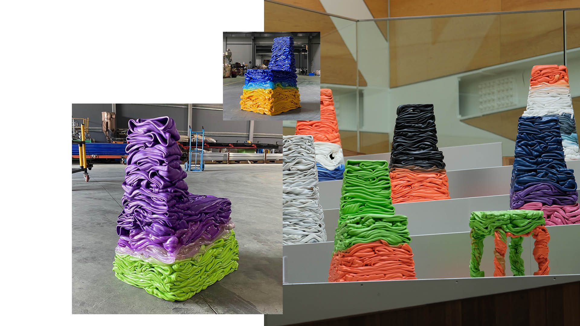 When the color of the plastic needs to be changed during plastic extrusion, any plastic extruded during the color transition phase is considered wastes. A plastic-coated metal pipe supplier had been producing such industrial PVC waste 50t a year. In the perspective of the factory, mixed color PVC extrusions were nothing more than wastes. In the perspective of 1S1T’s Creative Collective, it was an opportunity for a new design, and a possibility of new sustainable material – Platubo. Platobo is the first attempt of 1S1T Creative Collective’s Zero Waste Project. Platubo is extruded PVCs that are re-shredded and re-fed into the extruder. Utilizing the various equipment of the factory, Platubo is produced as a rigid tube, coated over a metal pipe. However, Platubo can also be extruded to have a mass-like aesthetics as expressed in the seatings and vases in Platubo Collection. Aside from the very unique aesthetics, the most representative strength of Platubo Collection is the amount of PVC waste that it uses up. A single Platubo stool weighs 15kg, which means 50t of PVC wastes can be translated into 3025 stools. In order to meet our 2020 goal of transforming all the 50t of PVC waste into Platubo pipes and furnitures, we need your help.