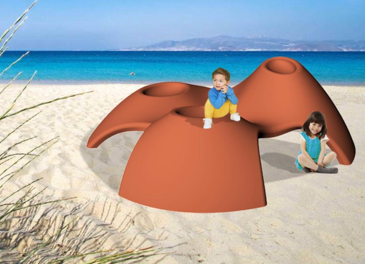 Τhe PlayPod is a structure meant to offer opportunities for spontaneous and unplanned play. An organic form echoing nature’s seemingly random sculptures, a cross between a cave and a marine organism manufactured using recycled marine gear through the process of robotic-arm large scale 3D printing. Aimed to inspire and encourage children to create their own play narrative rather than dictate it, while promoting awareness on plastic recycling and aspects of circular economy. The PlayPod is 100% recyclable. Developed by Konstantinos Skopas (Koncave) as a Master thesis project for the International Hellenic University, in collaboration with BlueCycle and the New Raw.