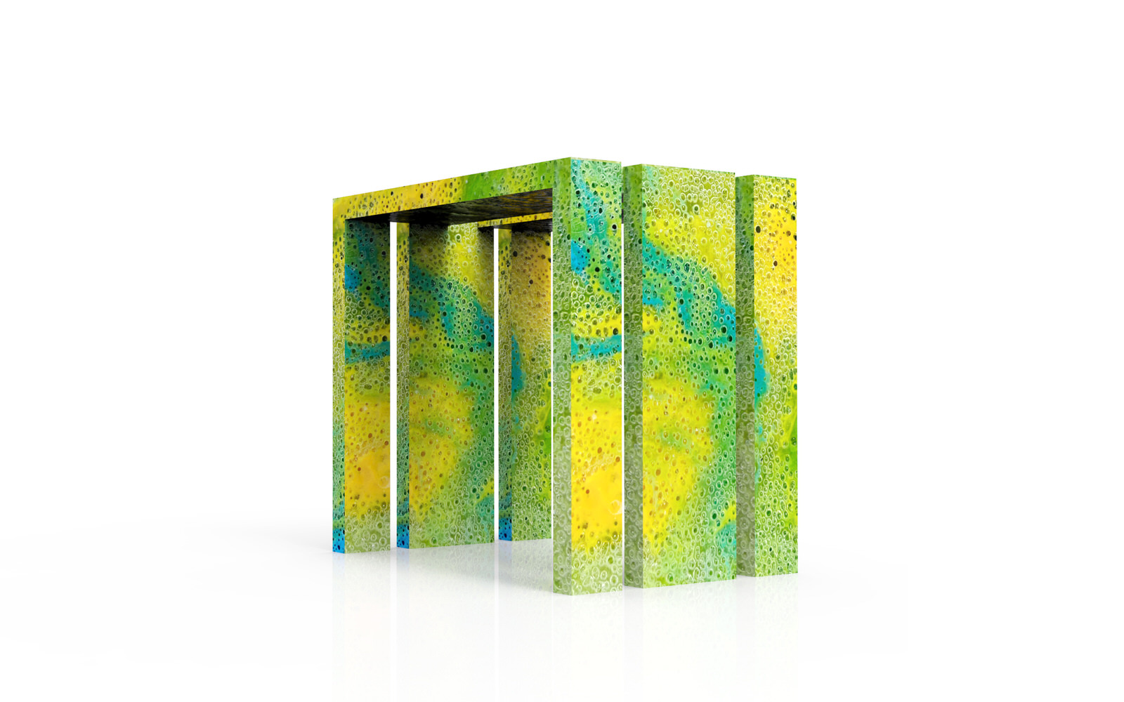 It is no exaggeration to say that due to the influence of Corona Pandemic, the usage of delivery food applications such as Uber Eats is booming, and the non-face-to-face online shopping rate has increased rapidly, suggesting a new paradigm in the era of untact. As everyone agrees, the garbage generated after eating delivery food and opening the package from online shopping is so enormous that there is no solution. Therefore, the advent of the untact era has brought a lot of social development, but the need to deal with huge waste has also raised as a problem at the same time. There are already countless plastic recycling solutions such as PE and PP that exist. Many companies have already participated in recycling, such as making textiles through knitting vinyl pieces or melting plastic into desired shapes. They are developed over a long period of time. But what about Styrofoam? As much Styrofoam is thrown away as plastic a day. its’ volume is so large compare to plastics, making it difficult to recycle. Unlike plastic, Styrofoam has no suitable recycling method. Stanford University’s recent research of meal worm eating Styrofoam was recognized as a very sensational announcement in that it presented a Styrofoam treatment method that had never existed before. In fact, many states including New York, Washington, and Los Angeles, have already regulated the use of Styrofoam since there is no way to recycle them in the United States, which seems to be spreading throughout all over the country. Like this, the need for research on Styrofoam recycling methods cannot be delayed any longer. Styrofoam is a large plastic made of 2% polystyrene and 98% air compression. Since the air is compressed together, it is very bulky but very light. “If I could get air out of it, wouldn’t I be able to easily get the raw material of plastic and recycle it as a new object?” That’s what I thought and started research about it. And I found out that when acetone touches the Styrofoam, the air compressed in Styrofoam evaporates, leaving only polystyrene and turn into a very small amount of slime. It is already known that about one box of Styrofoam in this acetone produces slime about the size of the palm of the hand. “If I put the slime in a specific mold and wait until all the acetone to evaporate, wouldn’t this polystyrene harden?”That’s what I thought, and I actually succeeded by conducting a lot of experiments. I found that polystyrene, hardened until all acetone evaporates, is waterproof, very solid like other plastics, can be freely colored, and anyone can recycle Styrofoam easily because it does not require heat during melting. Silicon, glasses, paper cups, vinyl, wood, etc.. everything can be used as a mold. If you use shiny materials as molds, the polystyrene will glow even after it hardens, and if you use matte materials as molds, the polystyrene will also feel matte even after it hardens. As Styrofoam is made by compressing it with air, it is also unique to this material that bubbles that have not escaped are easily observed on the surface of the material. Based on these findings, I made a mini bench that can be easily used in the city. This bench is actually made of 100% discarded Styrofoam. Styrofoam waste that can be picked in the city can be easily melted and be compressed into a small volume at once. And mass production is also possible due to low cost. Even if there is a stain on the trash, melting the colored Styrofoam together will cover the stain easily, so you don’t have to clean the Styrofoam waste separately. The only thing you need to do is remove the vinyl or stickers on the surface, and put them in acetone. And wait until they get harden. The speed of hardening varies depending on thickness and size, but if you make a small hole in the surface with a needle, the acetone usually evaporates faster. In about seven days, it hardens moderately, and after about two weeks, even in thick form. You don’t have to heat it up or blow the wind, if you store it at room temperature, it naturally hardens. It is designed as a bench type that can be easily used anywhere in public and minimized the type of pieces to facilitate mass production. It was made using green, yellow, and blue color, which symbolize nature. In order to make colors, I mixed colored Styrofoam grains together without using a separate pigment. About 35 Styrofoam boxes were used to make this chair. I’m sure this Styrofoam recycling method that I developed will be an innovative answer to the problem of waste solving around the world, given that it can be easily recycled into objects of interest.