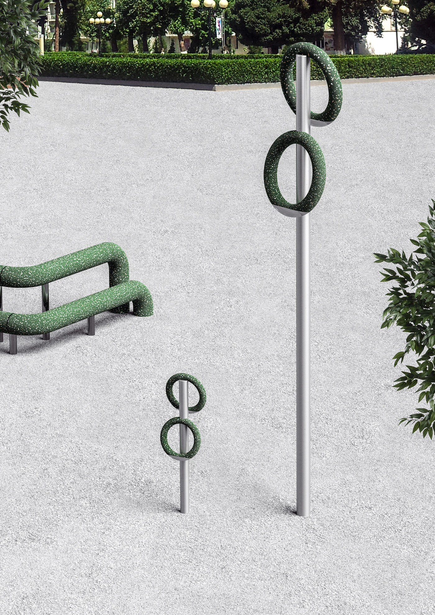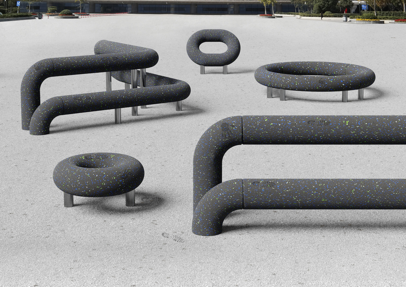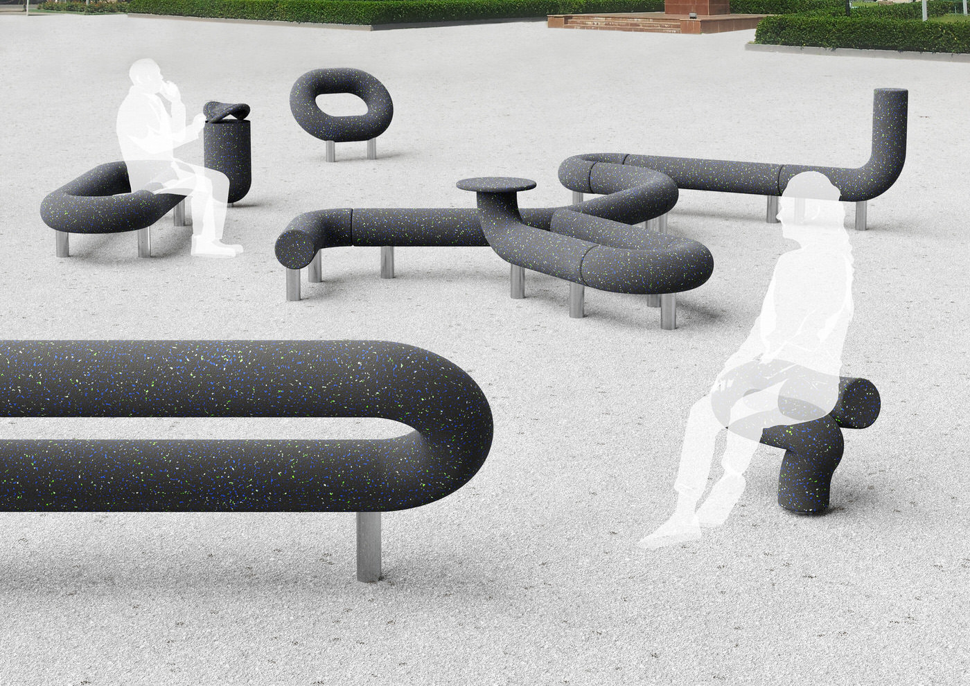 In the 1970s, placing car tires on the seabed in front of the coasts seemed the winning idea to create artificial reefs capable of stimulating the growth of new marine life, so as to help fishing. Over time, It proved to be a monumental mistake, causing damage to natural corals and polluting the waters; cleanup efforts continue to this day, and have barely made a dent in the enormous number of tires on the ocean floor. We were motivated to encourage a conversation on the theme and designed an ecosystem of sculptural active-seats for the urban space, inspired by the curves of corals, that could make use of these exhausted rubber tires and promote their recovery from the bottom of the sea. These modules could colonize the city as long lasting benches, seats, climbing structures for children, public lamps and create a playful zone where to conversate, play and relax in a more conscious and active way.