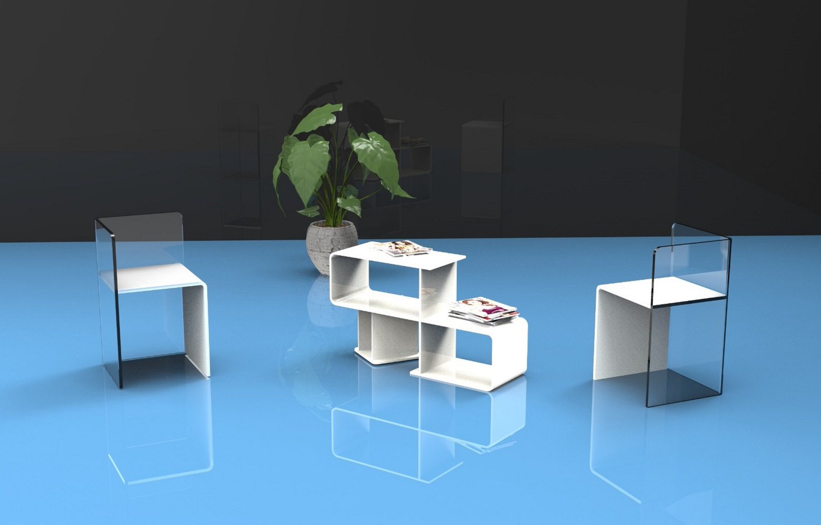 Taking over from my father twenty-two years ago in the family business, I learned immediately how to work PMMA (polymethylmethacrylate) right inside the precision machining workshop itself. Interested in Interior Design, I obtained in 2013 a utility patent of lighting decor accessories, which lead me to develop the passion for lighting design. With the physical characteristics of PMMA (polymethylmethacrylate) and its transparency qualities superior to glass, I created an innovative collection of light creations, individually designed and hand-crafted in the family workshop, obtaining the material from cast blocks of waste from local companies. The philosophical style of my design is manifested through the illusory game of full and empty enclosed in my energy saving LED lamps. The design and production know-how developed by me has allowed me to safeguard the purity of the cast PMMA used in each of my creations, in order to guarantee the recycling process. This process is characterized by a zero environmental impact, as it does not use polluting materials, it not produces polluting emissions (fumes, sewage or dust) and the material produced is absolutely non-toxic (also usable for food purposes) and perfectly recyclable. The polymerization, in fact, is reversible at high temperatures, thus making the waste 100% new raw material. Focusing on this principle of circular economy, I opened an innovative startup in 2019 that deals with the design of furnishing and fashion accessories, focusing on the use of PMMA exclusively recycled / regenerated (in turn recyclable / regenerable) and therefore currently limited to maximum thicknesses of 20 millimeters. However, the rapid technological evolution of recycling processes will soon make it possible to obtain ever greater thicknesses of recycled / regenerated material. Periodically updating myself with the two companies in Italy that today recycle PMMA industrial waste, I focused on the problem of the enormous amount of separation and protection barriers present in the world following the beginning of the pandemic, barriers that will be unused at the end of the sanitary emergency. For this reason I have designed a furniture collection for public environments created with the recycling of these future redundancies, through construction techniques themselves with zero environmental impact so that even the finished products are in turn recyclable. The collection includes a chair model in all bench variants (designed for places of cultural interest, but also for parks and squares), a model of led lamp in all indoor variants (designed for places of cultural interest), a model of luminous skirting in two led lighting variants (designed for hospitals and places of cultural interest), a modular furnishing model (designed for places of cultural interest). The thicknesses of the material obtained from recycling and of which the collection is composed are 10 mm for the modular furniture, 15 mm for the skirting and the chair, 20 mm for the lamp.