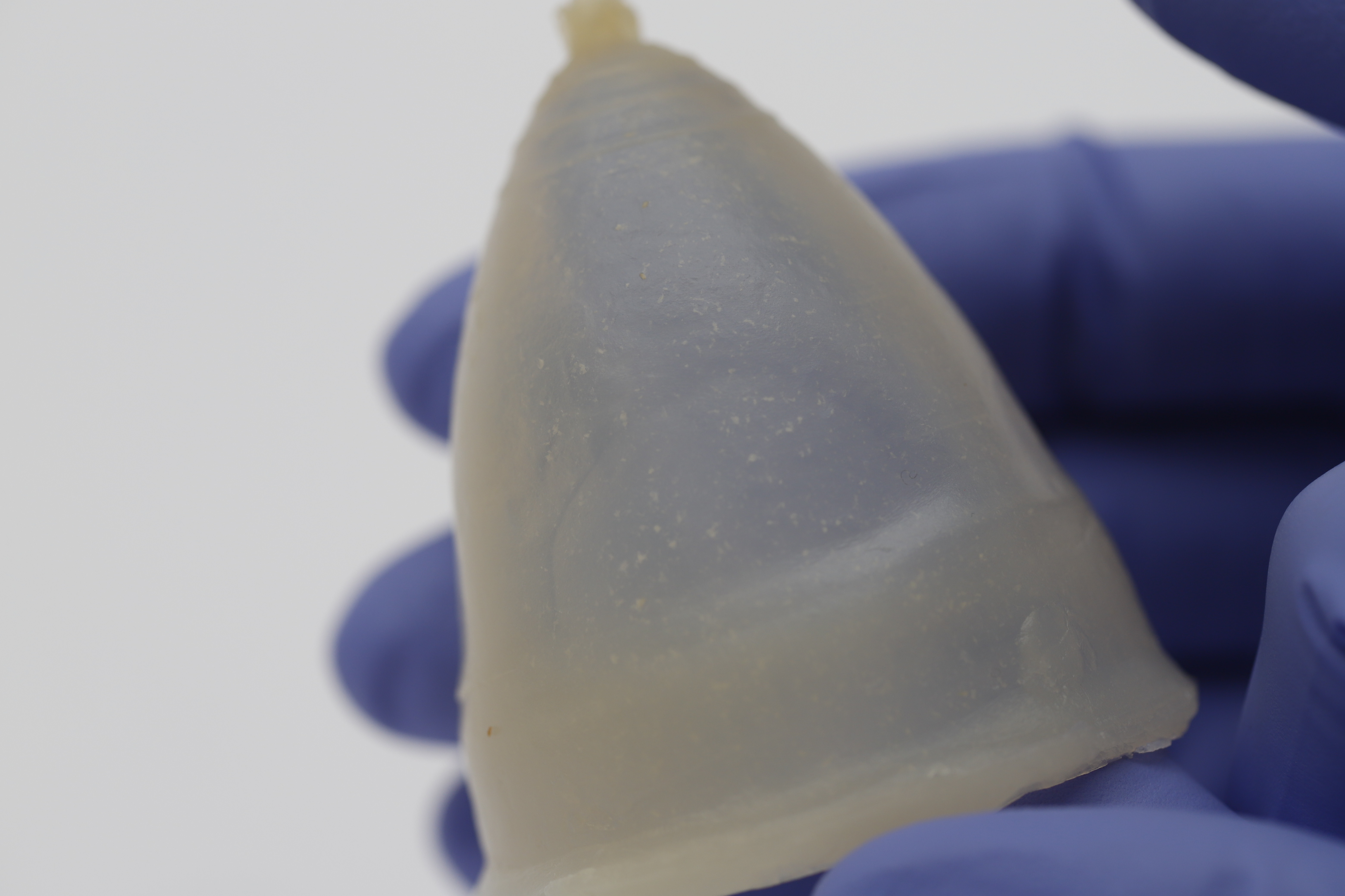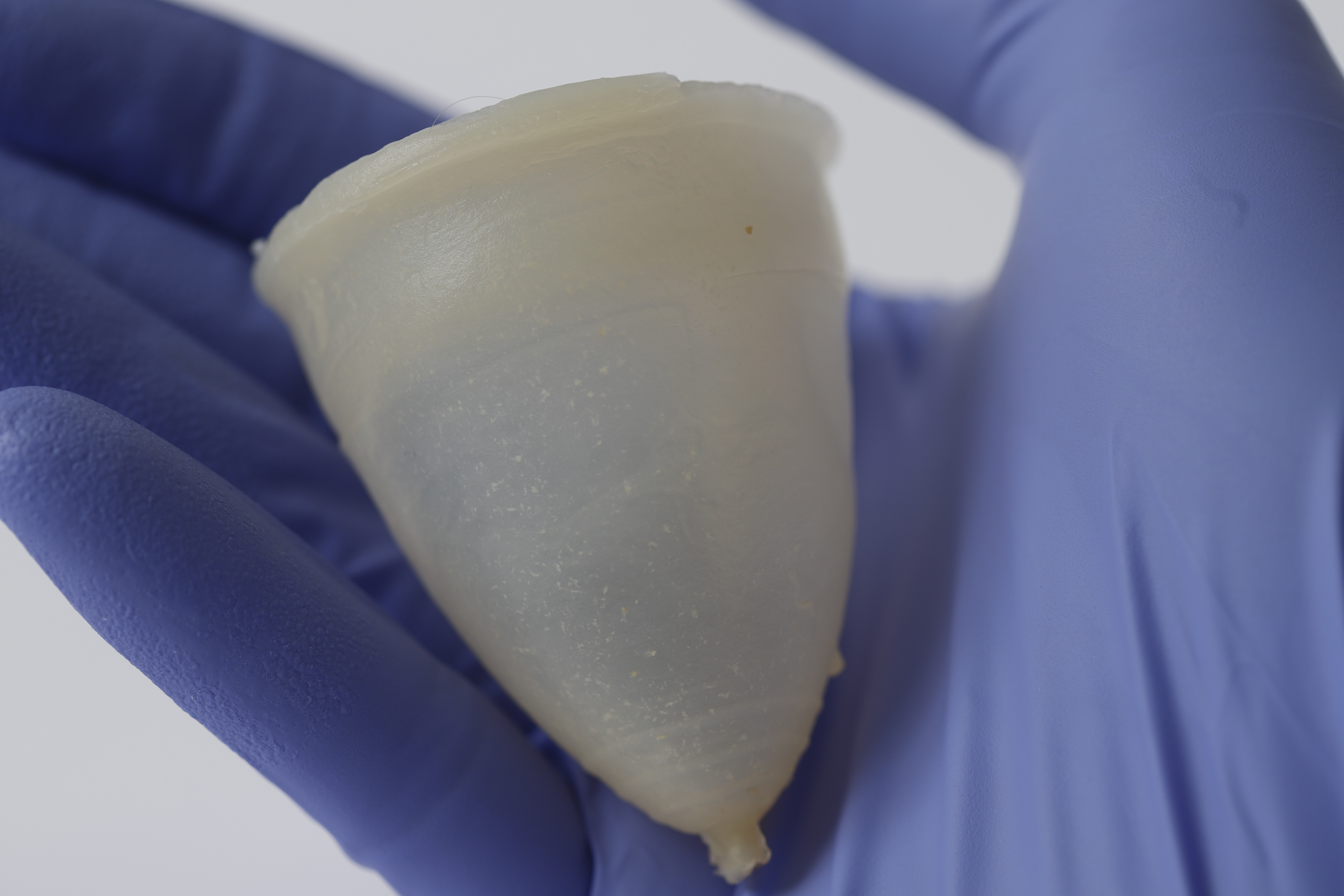 Interestingly, recent studies have highlighted how the introduction of probiotic bacteria in the vaginal environment of people who suffers from painful periods can reduce symptoms of dysmenorrhea as they produce anti-inflammatory compounds. Experiments show how these bacteria can both reduce the pain, and the number of painkillers used every month, whilst contributing to the general well-being of the menstrual body. As results from the lab experiments, several strains of vaginal lactobacillus extracted from the designer’s body exponentially grew inside the material (hydrogel) over two days of incubation, giving life to the first living menstrual cup ever designed.