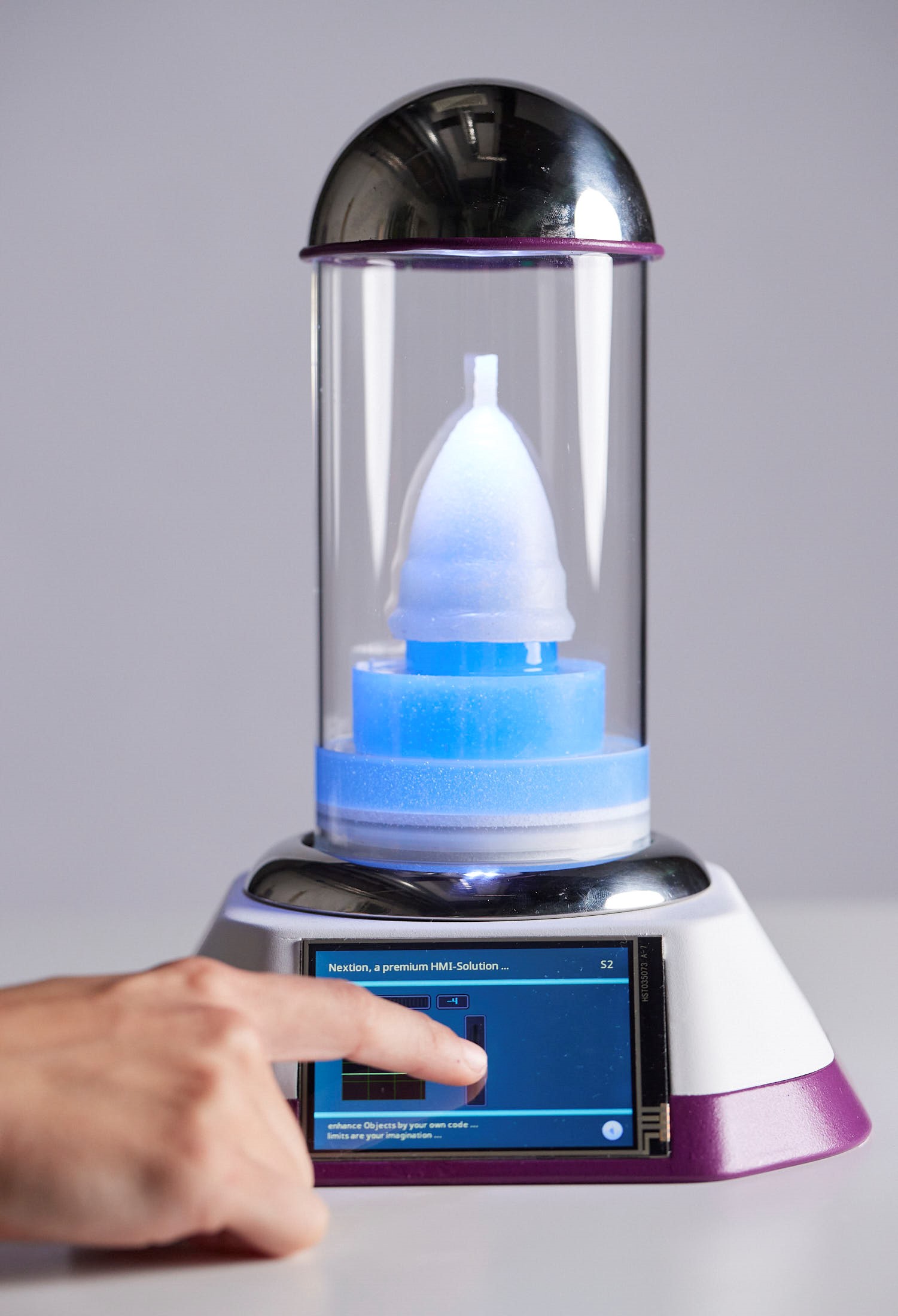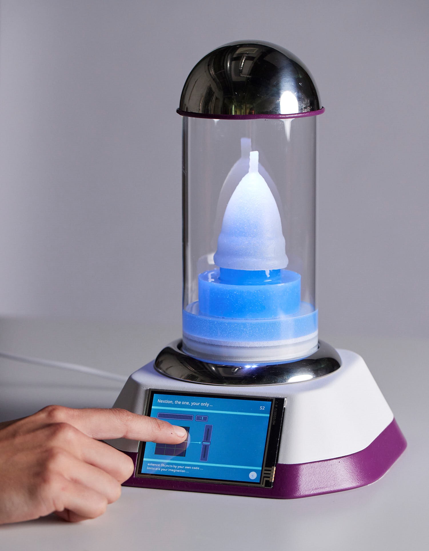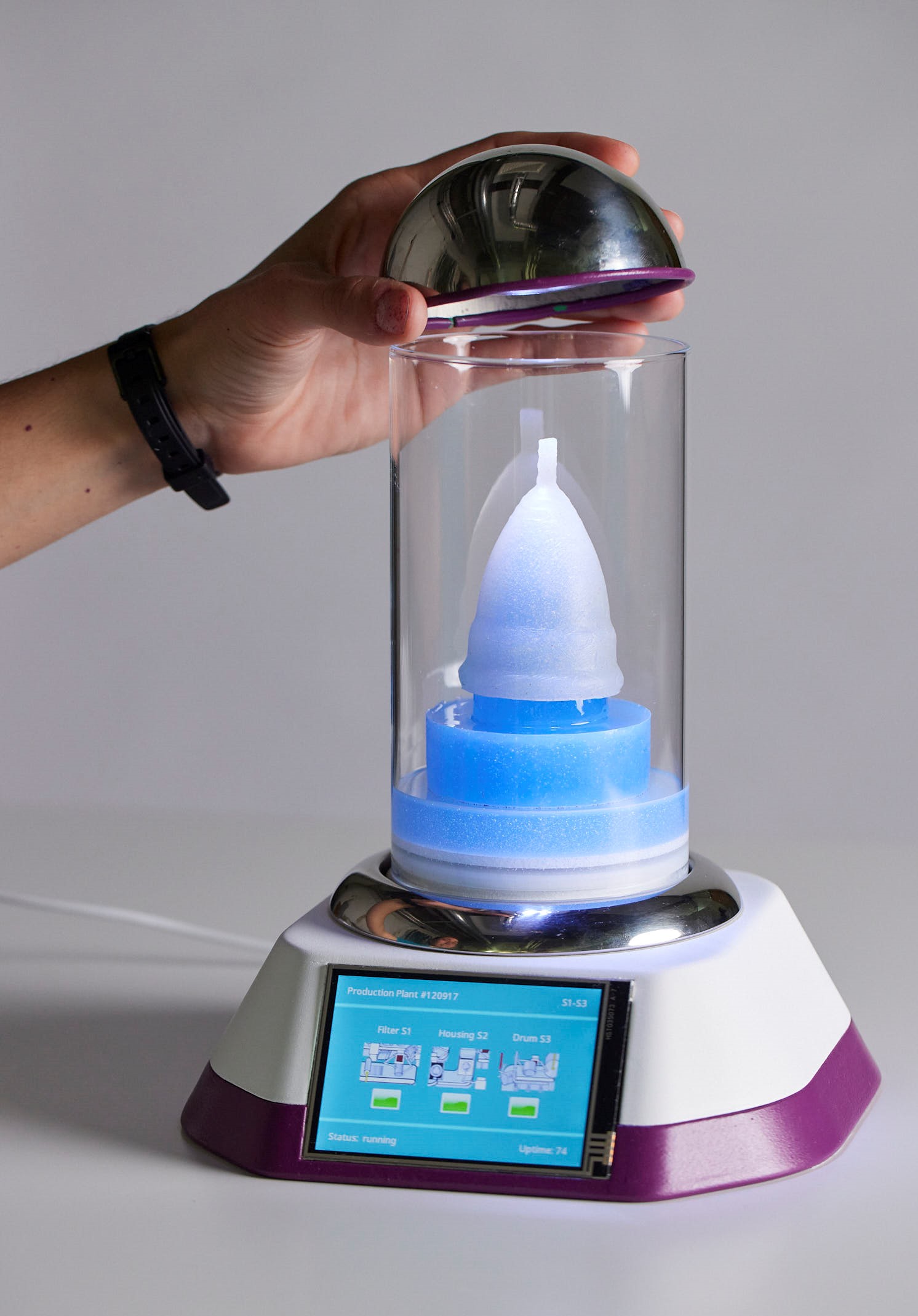 Thanks to an incubator that bio-mimics the vaginal environment, the user can learn how to cultivate anti-inflammatory bacteria by adjusting a few growing parameters using the touchscreen installed in the incubator. Every month, the cup is colonized by millions of healthy bacteria that live and grow inside the material. The Soothing Cup can then encourage a mutualistic relationship between the product and the experiencer, allowing menstruators to develop a deep attachment to their menstrual cup and a better understanding of the whole process of the menstrual cycle.